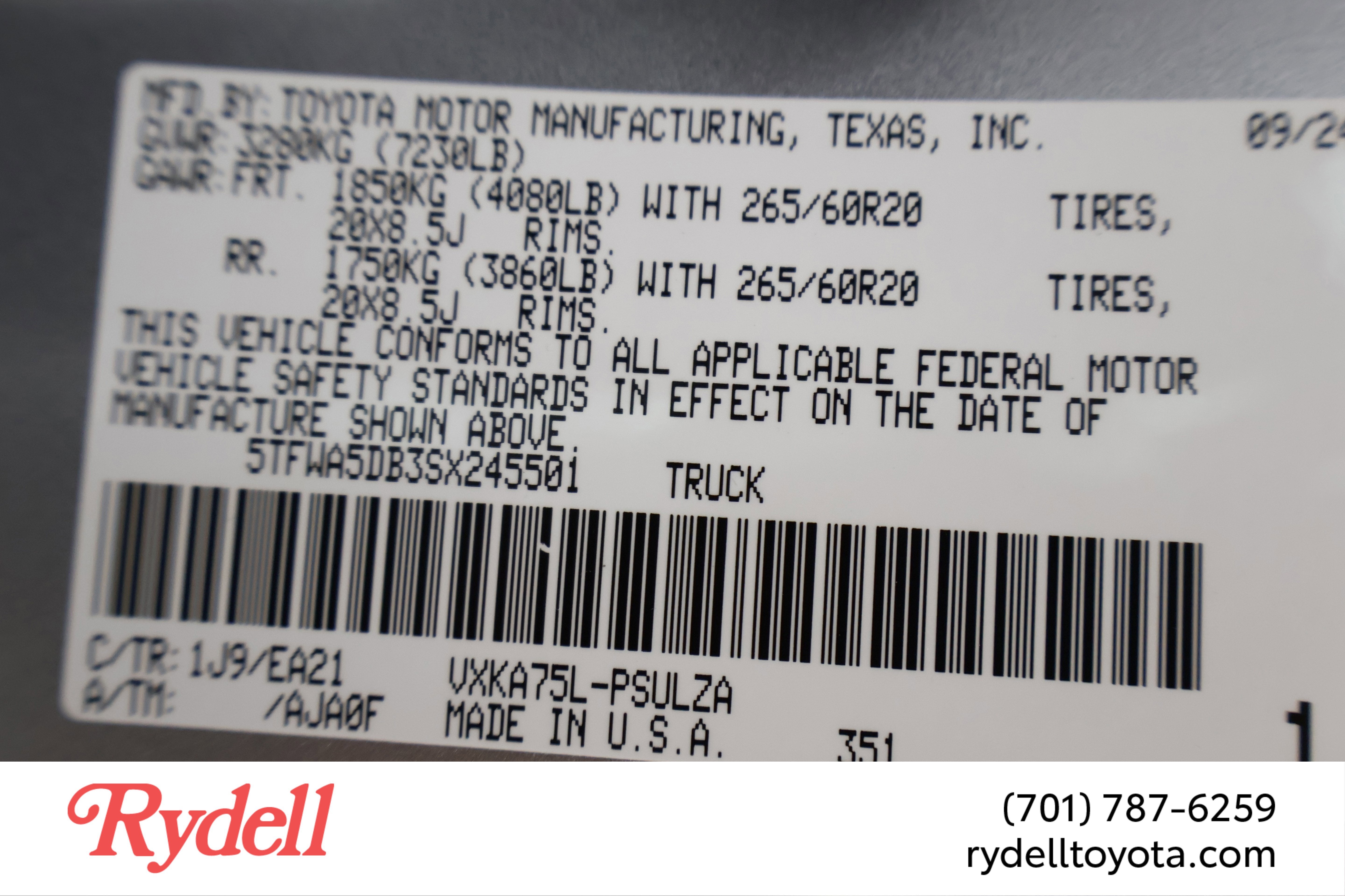 At Rydell Toyota of Grand Forks, we offer no-haggle pricing for a stress-free purchase process. Plus, with our 7-day money-back guarantee, you can shop confidently, knowing that satisfaction is our priority. Stop by today to test drive this exceptional 2025 Toyota Tundra Limited and discover the perfect fit for your needs.