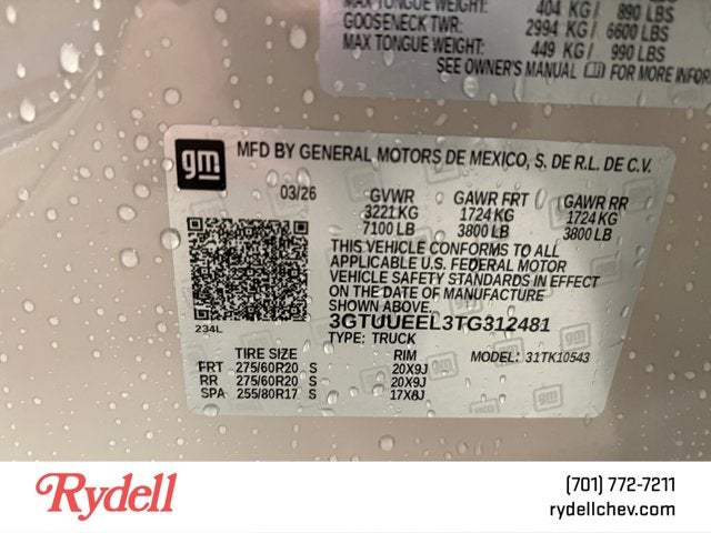 - Front Tire Size: 275/60R20SL