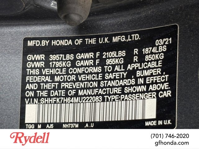 2021 Honda Civic Hatchback EX