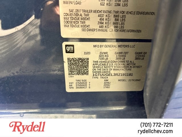 - Rear Tire Size: 275/50R22SL