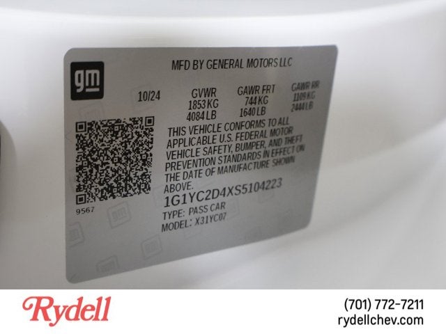At Rydell Chevrolet GMC Cadillac, we offer no-haggle pricing to ensure a stress-free purchasing experience. Additionally, our 7-day money-back guarantee reflects our commitment to your satisfaction. Visit us today to test drive this exceptional 2025 Chevrolet Corvette Stingray RWD Coupe 3LT and find the perfect blend of performance and luxury.